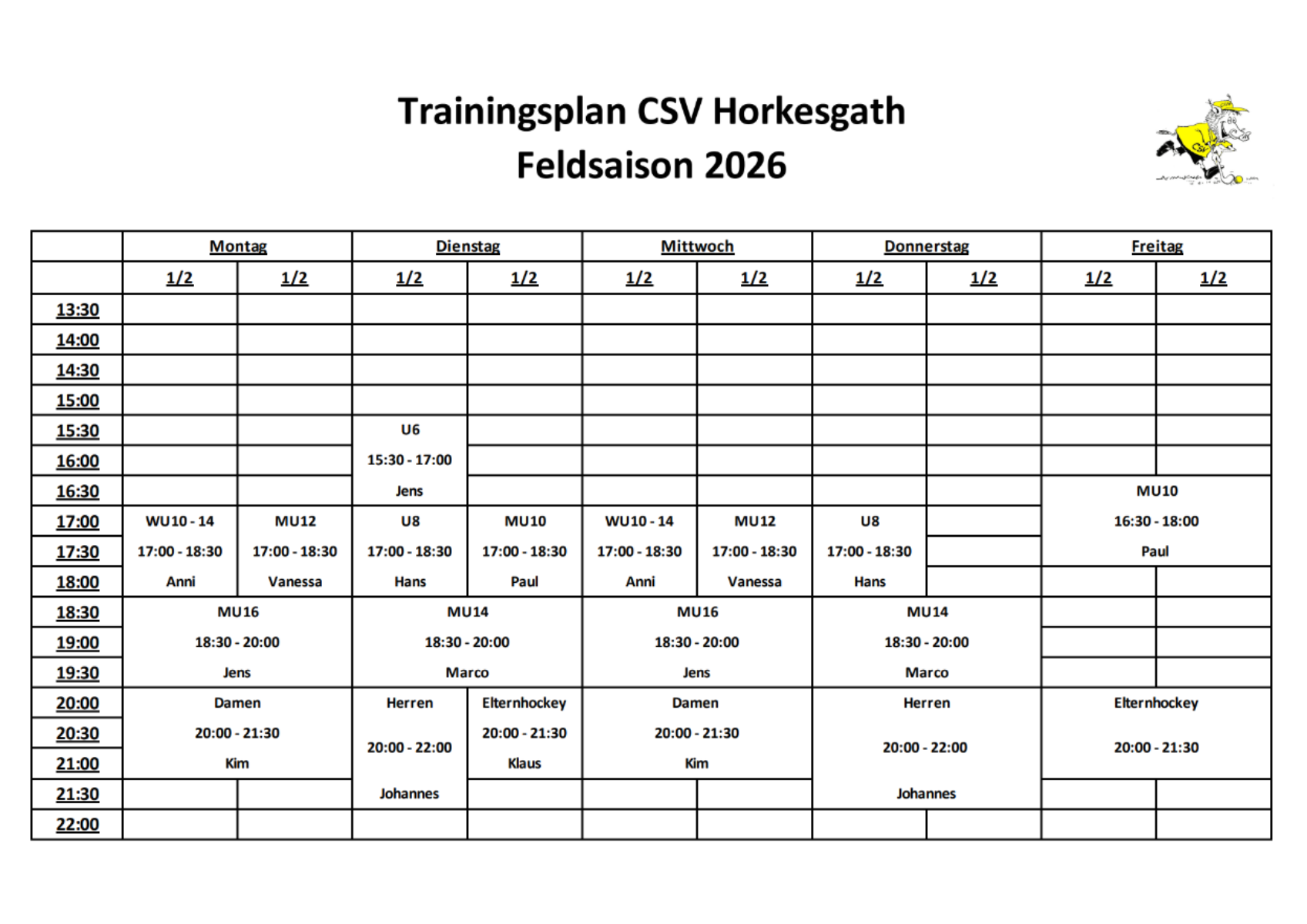 Trainingszeiten Feld: